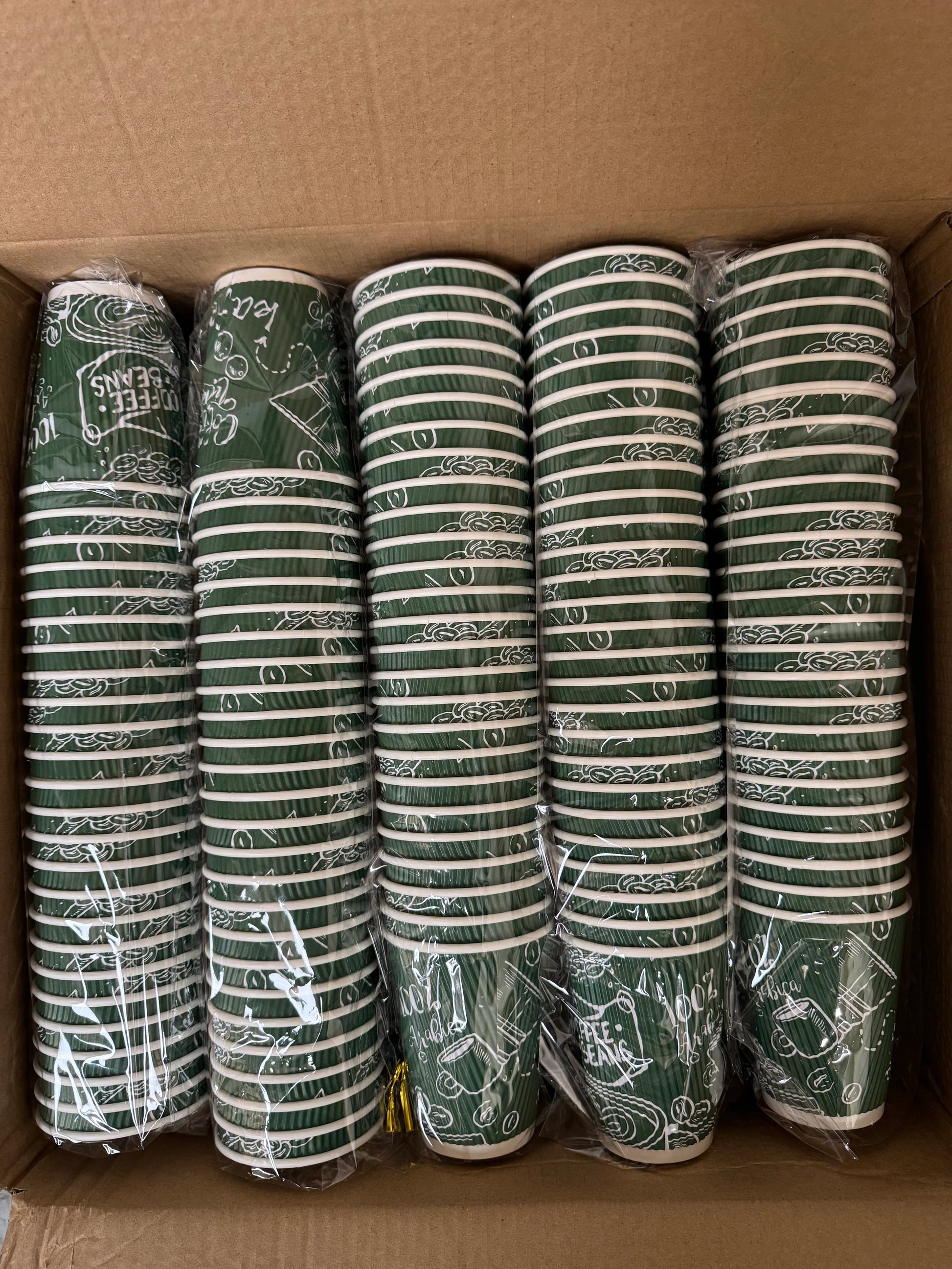 Green Ripple Insulated Paper Coffee Cups 12oz (500 Pack)